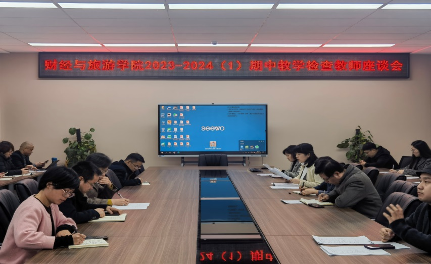 11月20日下午,财经与旅游学院2023-2024学年第一学期期中教学检查教师座谈会在崇理楼D504召开。会议由财经与旅游学院院长何奇彦主持,财经与旅游学院全体专任教师参会。