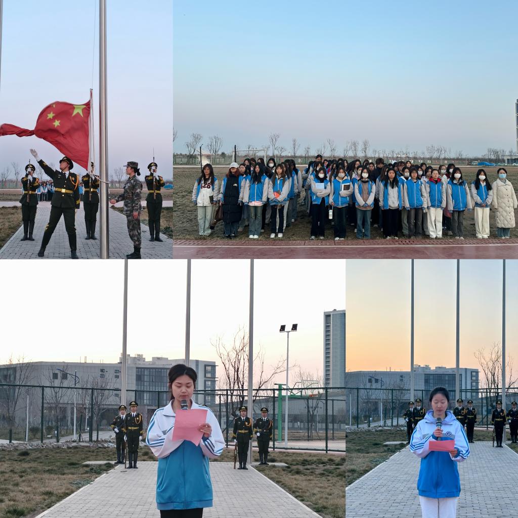 6点50分,升旗仪式正式开始。英姿飒爽的国旗护卫队迈着整齐有力的步伐护送国旗入场,在激昂雄壮的国歌声中,五星红旗冉冉升起,全体师生庄严肃立,向国旗行注目礼,爱国之情在每个人心中澎湃。