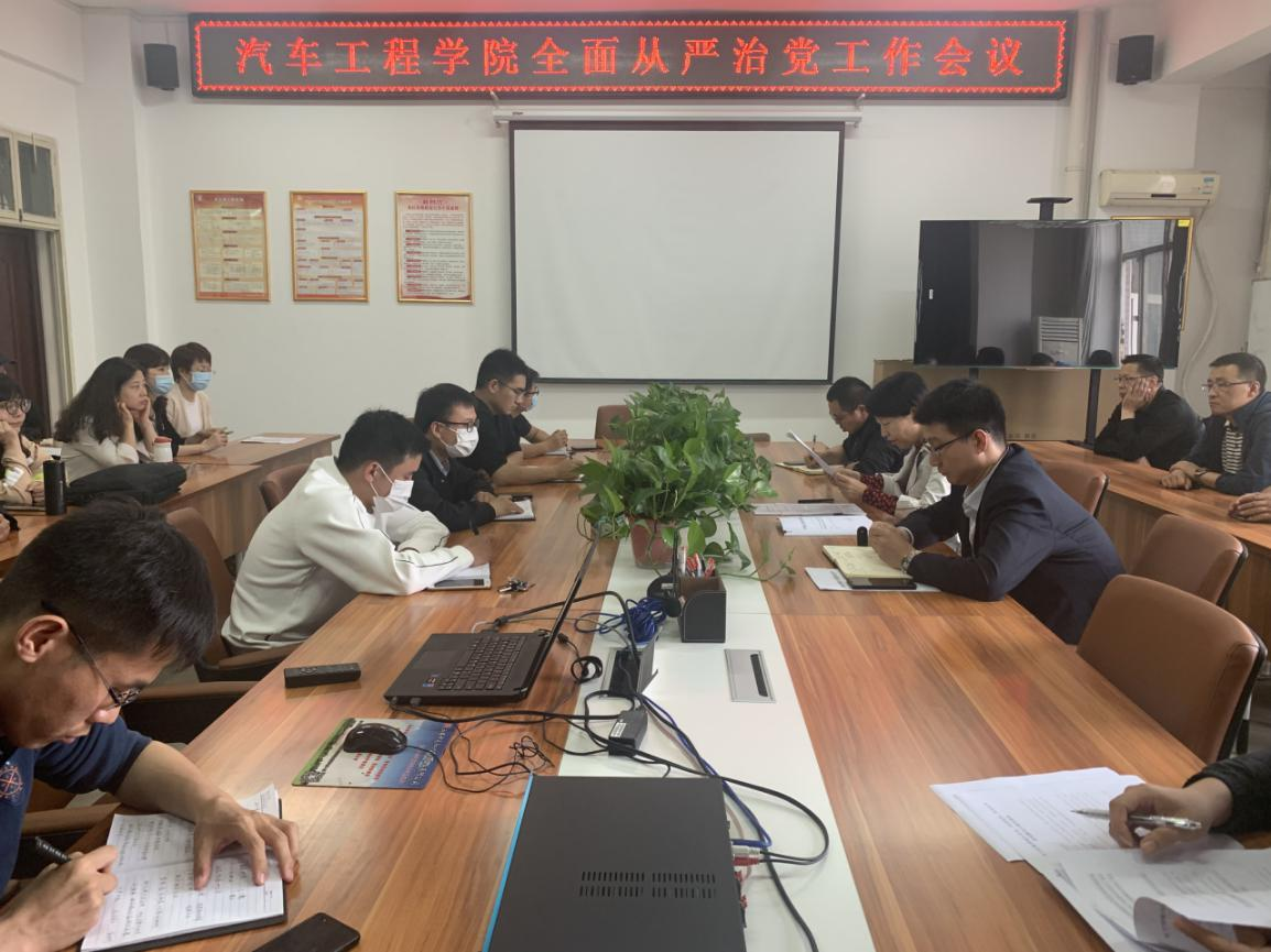 为夯实全面从严治党与稳定安全工作责任,5月17日下午,汽车工程学院党总支在崇文楼A505会议室召开了全面从严治党专题学习会议。会议由学院党总支书记高亚宁主持,全体教职工参加。