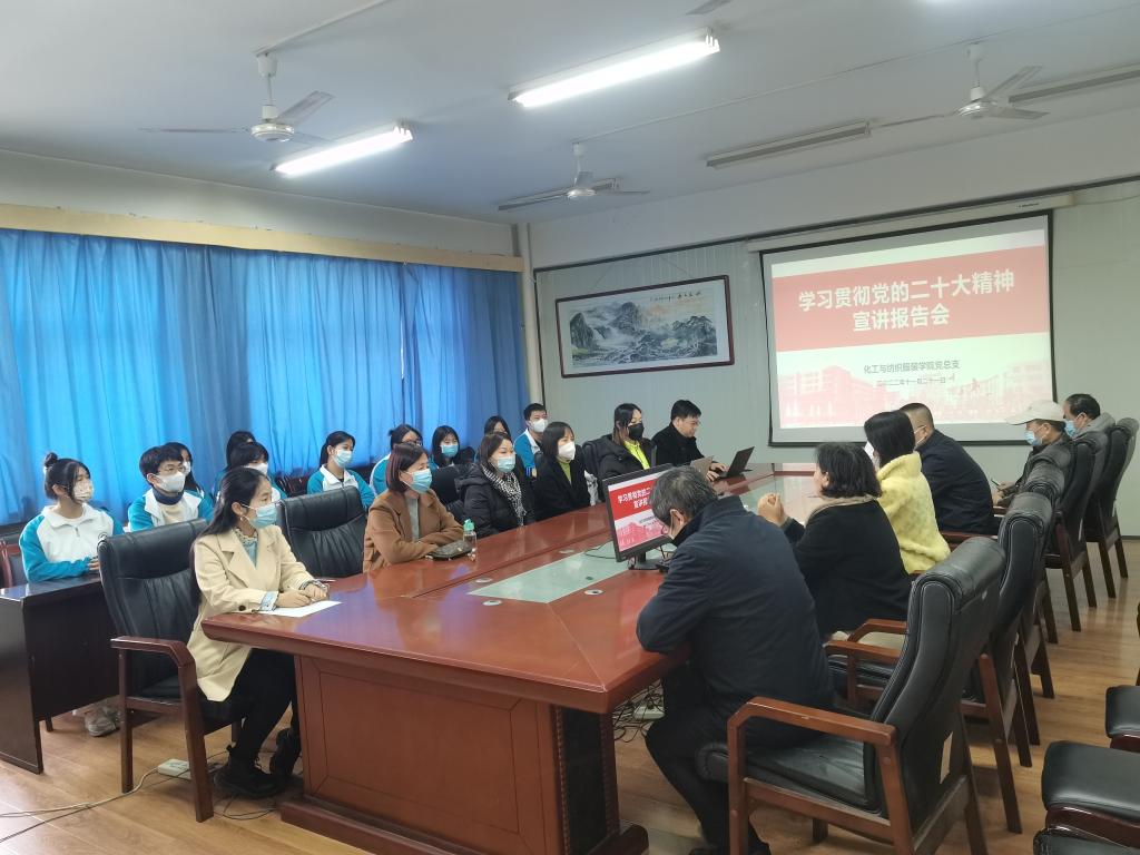 为深入学习宣传贯彻党的二十大精神,11月21日下午,化纺服学院党总支在崇文主楼811会议室举行“学习贯彻党的二十大精神”宣讲报告会,会议由化纺服学院党总支书记贾格维主持,党总支全体党员和学生代表参加。