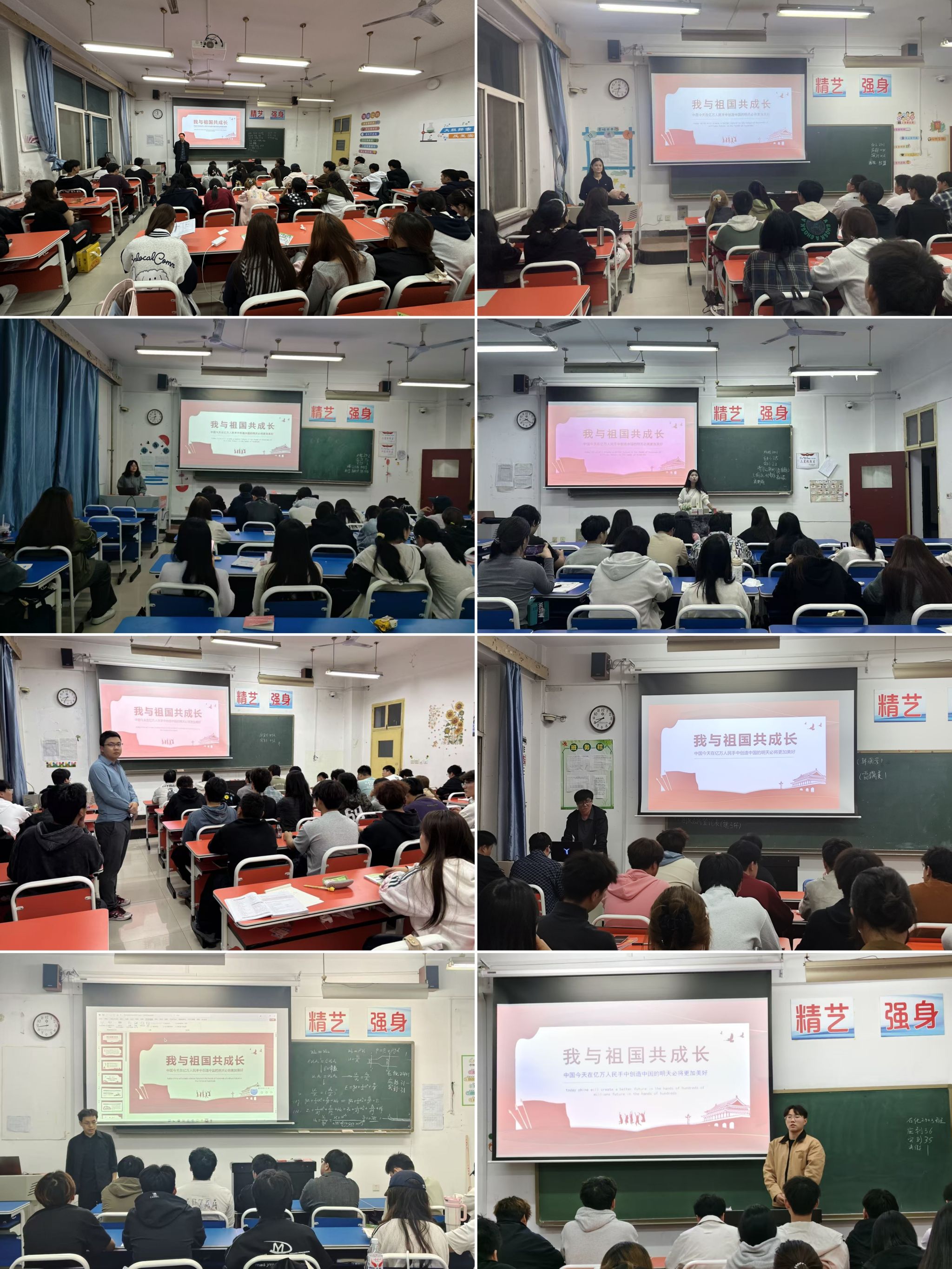 为引导青年学生厚植家国情怀、弘扬革命传统、传承红色基因,9月27日,化工与纺织服装学院组织各班级于晚自习期间,集中开展“我和祖国共成长”主题班会活动,并同步动员学生参与“青春闪耀祖国大地”网络打卡,以线上线下联动的形式,让红色精神在青年学子心中落地生根。