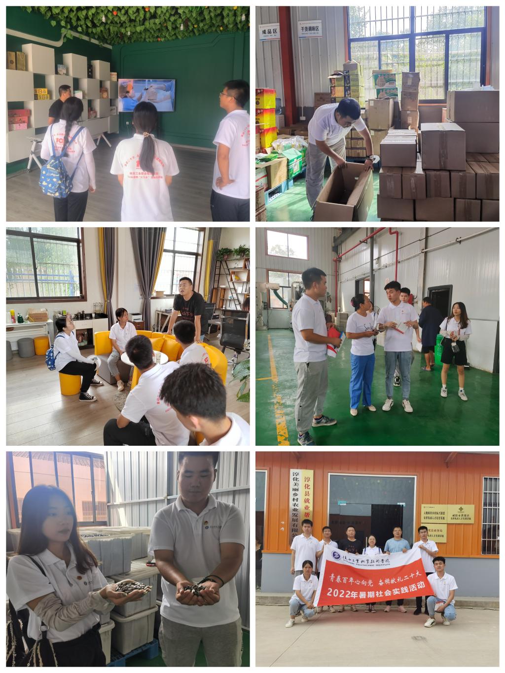 到达大槐树村电商中心后,电商孵化中心负责人张晗组织成员们观看了宣传片,介绍了当地特色产品以及其他扶贫项目,并带领大家参观直播间,成员们进行了切身体验,随后,实践团跟随负责人走进电商分拣中心,在工作人员的指导下,成员们开展产品的整理、分类与搬运等活动。随后,实践团成员与电商运营团队成员进行了深入交流。交流中,负责人张晗为我们讲述了他的返乡初心、团队组建、现有成效,在讲述过程中,他提到:“当下农村为我们这代人提供了机遇,作为新时代青年,我们要积极响应国家号召,投身于乡村发展,紧紧抓住乡村振兴战略下的一切机遇 ,将个人发展与乡村振兴相结合,为乡村发展贡献自己的力量。”走出电商孵化中心,实践团又来到了品令食品瓜子制作厂,管理人员带领成员们参观了品令瓜子的风选到包装的整个工艺流程,同时对成员们在参观过程中对相关的制作流程与销售途径的疑问进行了解答。