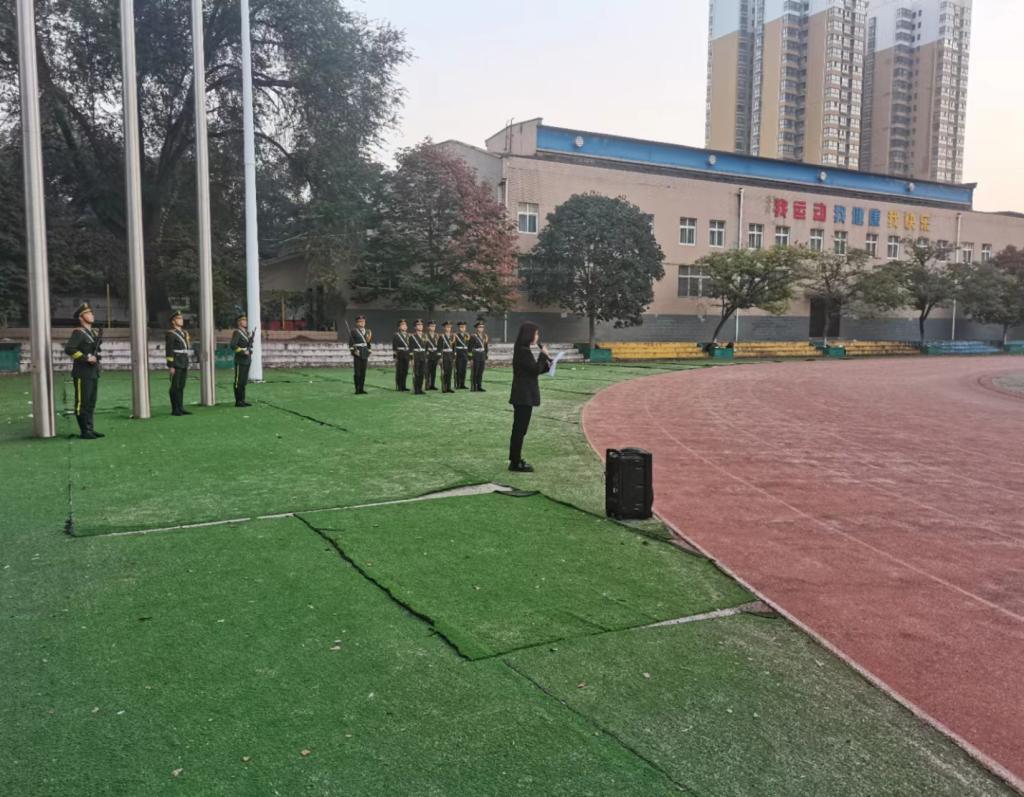 7点整,升旗仪式正式开始,在全体师生的注目礼下,英姿飒爽的国旗护卫队护送国旗入场,伴随着庄严的国歌声,五星红旗冉冉升起,迎风飘扬。在场的每一个人对国旗行注目礼,场面庄严肃穆。升旗仪式结束后,学院辅导员孙睿嘉老师作了题为《请党放心 强国有我》的主题发言,号召同学们感党恩、听党话、跟党走,以青春奋斗姿态,争做时代新人,在自己的岗位上发光发热,让青春之花绽放在祖国最需要的地方。随后,学生代表季欣妍同学作了《学习二十大 奋起新征程》主题演讲,表示大学生作为新时代青年,要始终牢记初心使命,坚定理想信念,将自身发展融入到实现中华民族伟大复兴的宏伟事业之中。