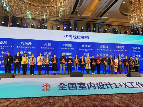 会议期间,中国室内装饰协会1+X执行负责人吴晓华介绍了室内设计1+X工作情况,并对室内设计1+X工作考核优秀的单位和个人颁发了证书。经专家评审、协会确认,我校被评为“2022年度室内设计1+X证书试点工作考核优秀试点院校”,土木学院院长杨谦被聘任为2022年度室内设计1+X证书省级工作委员会成员,安亚强入选中国室内装饰协会设计教育专家库职业院校组成员,秦亚梅荣获“2022年度室内设计1+X证书试点工作考核优秀院校教师”。