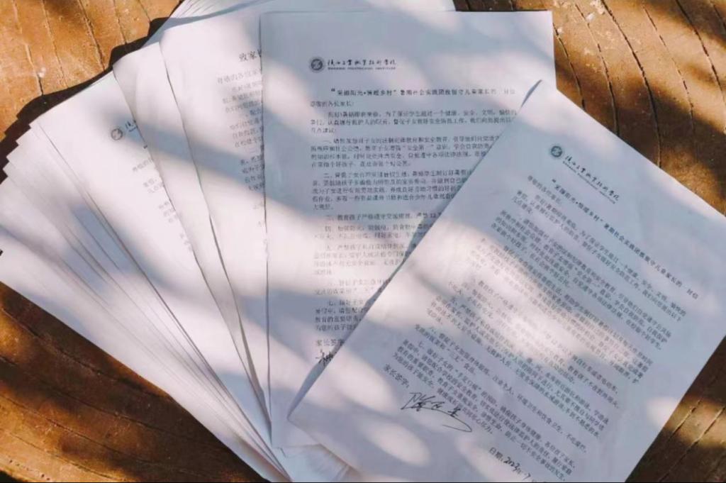 随后,康彤彤给孩子们分发了实践团事先准备好的“‘采撷阳光 情暖乡村’暑期社会实践团致留守儿童家长的一封信”,并为孩子们一一讲解里面的内容,告诫孩子们其中严禁禁止的事情一定不要做不要碰。