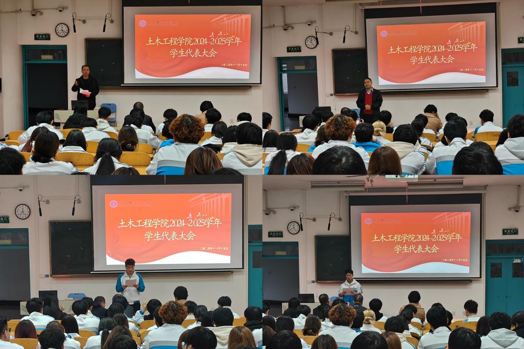 为全面贯彻落实党的二十届三中全会精神,进一步加强学院学生会组织队伍建设,优化学生骨干队伍结构,完善学生代表大会组织。2024年11月15日下午,土木工程学院于崇文西202教室召2024-2025学年学生代表大会。来自各专业、各班级的70名学生代表齐聚一堂,旨在为同学们搭建一个民主参与、交流沟通的平台,共同探讨学院学生工作的发展与未来,并选举产生了新一届学生会成员。土木工程学院党总支书记卢文澈、学工办主任马俊以及学工办辅导员出席会议。会议由工程造价2305班刘俊良主持。
