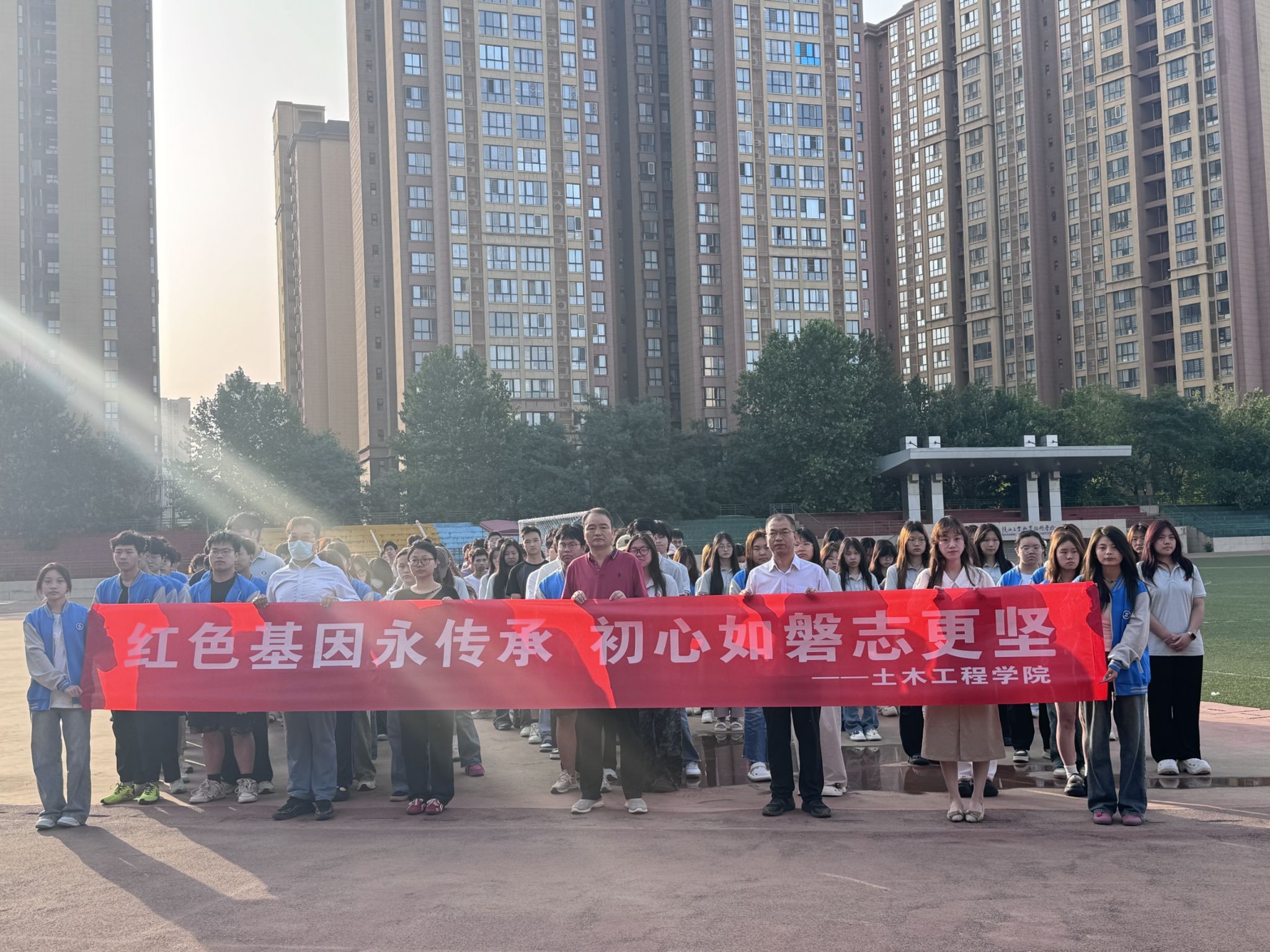 为深化爱国主义教育、厚植青年学子红色情怀,6月16日清晨,土木工程学院在学校操场组织开展红色基因永传承 初心如磐志更坚”国旗下的成长主题教育活动。土木工程学院党总支书记卢文澈、学工办主任马俊,土木学院全体辅导员及24级学生代表等200余人参与活动。