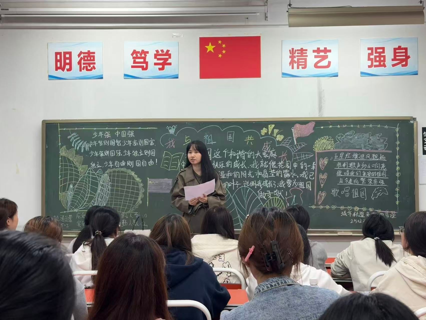 9月27日晚,土木工程学院充分利用晚自习时间,集中策划开展了“我和祖国共成长”主题班会。班会活动主题鲜明、内涵丰富,有的班级组织学生深情缅怀抗战先烈,在肃穆的氛围中追忆烽火岁月,汲取精神力量;有的班级开展党史国情知识竞答和主题讲述,激发学生的知史爱党、知史爱国热情;有的班级通过重读抗战家书、分享抗战故事,让学生在与历史的对话中感受家国情怀与责任担当;还有的班级组织红色经典影片赏析,在光影交错中重温革命先辈的奋斗足迹。一系列活动有效引导青年学生深刻理解了伟大抗战精神的内涵,自觉弘扬革命传统,传承红色基因,坚定了将个人成长融入国家发展伟业的信念。