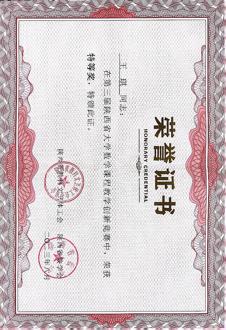 近日,第三届陕西省大学数学课程教学创新竞赛获奖结果公布,我校公共课教学部王琪、鲁明浩、张穗教师团队斩获特等奖,这是我校首次参加此项赛事并与省内本科院校同台竞技。本次竞赛共评选出特等奖5名,一等奖10名,二等奖16名和三等奖15名,我校是省内唯一入选并获奖的高职院校。
