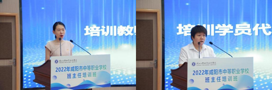 团委副书记薛媚作为培训教师代表发言,她表示将采取多种教学形式和方法,将教学内容与学生工作紧密联系,精益求精,不辜负各级领导和学员的期望。秦都区职业教育中心学生处副主任常宇作为培训学员发言,她表示全体培训人员会会珍惜机会,做到集中精力,全力以赴完成好角色的转变,团结互助,共同提高,努力完成培训任务。