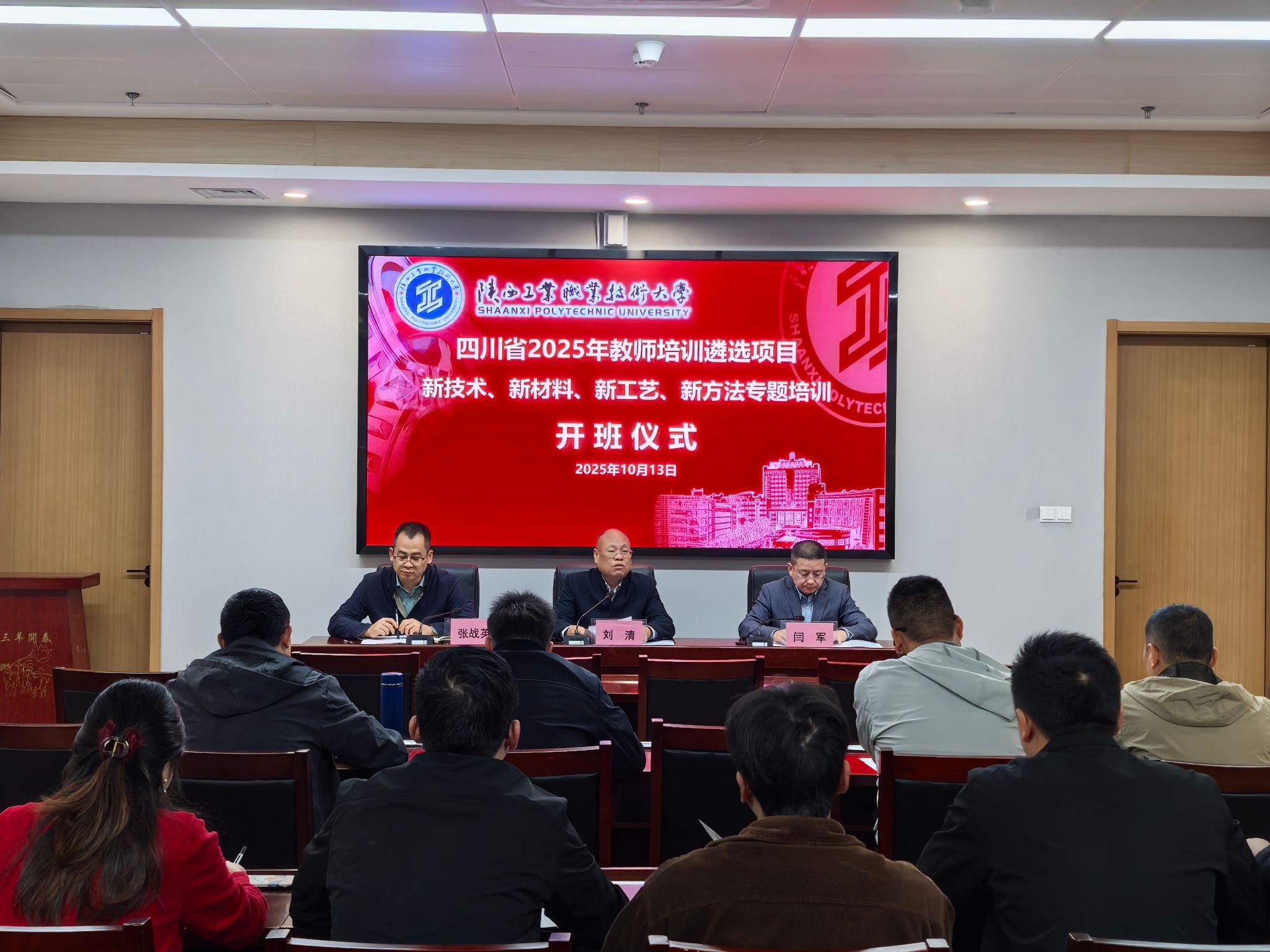 10 月 13 日上午,四川省 2025 年教师培训遴选项目新技术、新材料、新工艺、新方法专题培训班开班仪式在经开校区启新楼顺利举行。副校长刘清,继续教育与培训学院、材料工程学院负责同志,培训班相关管理人员及全体学员共同参加。