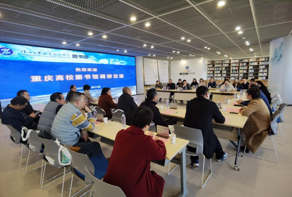 为进一步加强各图书馆之间的交流与合作,11月23日下午,由重庆市高等学校图书情报工作委员会组织,重庆市14所本科、5所高职成员馆有关领导一行到我校调研、参观与交流。我校副校长梅创社,图书馆馆长王丁、副馆长王艳及部分业务骨干进行了接待。