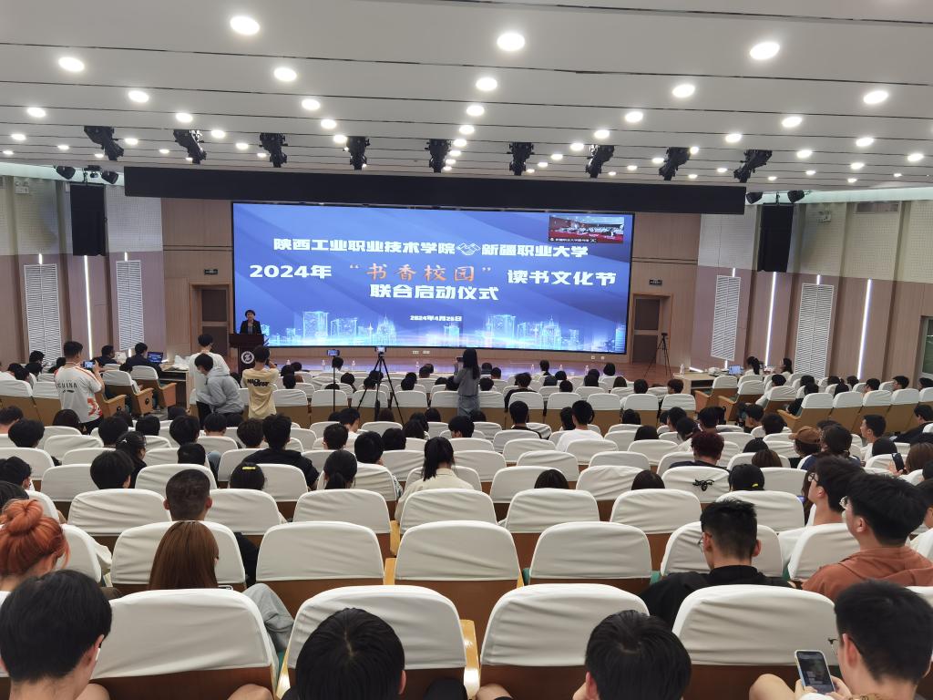 第一阶段为两校2024年“书香校园”读书文化节联合启动仪式,新疆职业大学校党委常委、统战部部长游海丽教授,我校校党委委员、副书记贺天柱教授,以及两校图书馆和各职能部室负责人、教职工代表、学生代表600余人现场参会。会议由我校图书馆馆长王丁主持。
