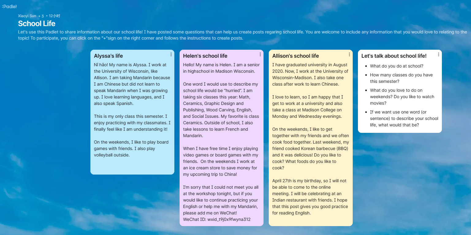 中美职业院校语言文化研习营交流项目是在开云手机官方版在线入口与麦迪逊区技术学院合作框架协议的基础上,两校创新形式,开展的线上学生语言文化交流项目。此次的第二期项目学生通过视频、文字、在线交流等形式,介绍自己以及本地文化风俗等,以促进两校学生互学对方国家语言,增进对彼此文化的了解,建立友谊,促进交流。