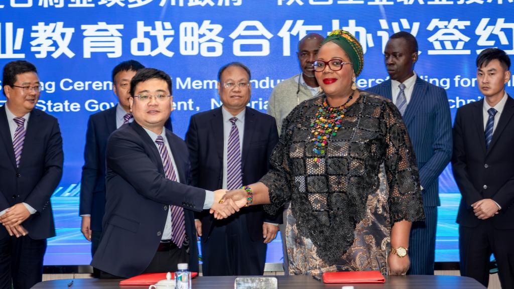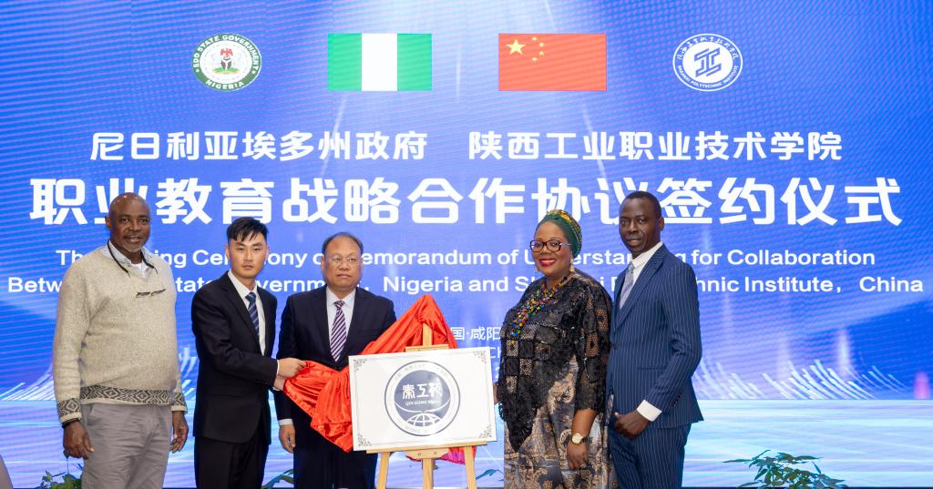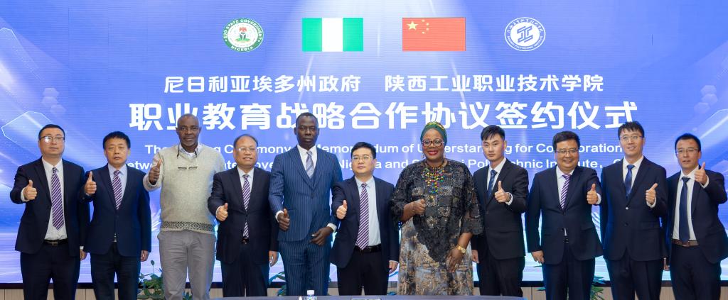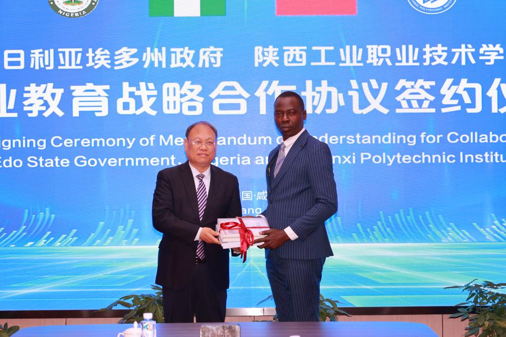 11月25日,我校与尼日利亚埃多州政府职业教育战略合作协议签约仪式在渭城校区举行。埃多州政府教育厅厅长琼·奥维亚韦、农业厅厅长斯蒂芬·伊德恩雷、埃多州理工大学校长西尔维斯特·奥莫鲁伊、学校副校长刘清、尼日利亚永星钢铁有限公司采购部部长苗森出席活动,党委副书记田昊主持仪式。