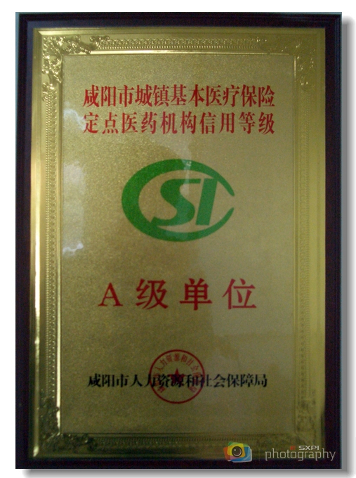近日,我院卫生所在全市城镇基本医疗保险定点医疗机构和定点药店年度综合考评中以总评91.88分,排名145家定点医疗机构第三,被咸阳市人力资源和社会保障局授予“城镇基本医疗保险定点医药机构信用等级A级单位”称号。