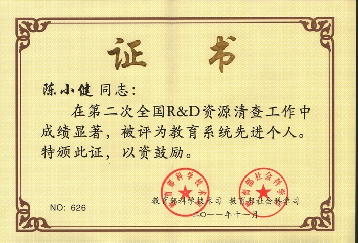 近日,教育部科学技术司和社会科学司联合下发了《关于表彰教育系统第二次全国R&D资源清查先进集体和先进个人的通知》(教技司【2011】352号),对在资源清查工作中做出突出成绩的集体和个人进行了表彰。