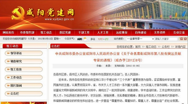 根据《中共咸阳市委办公室 咸阳市人民政府办公室关于命名表彰咸阳市第八批有突出贡献专家的通报》(咸办字[2012]8号) ,我院国家教学名师、机械工程学院院长田锋社教授和陕西省劳模、电气工程学院院长卢庆林教授被中...